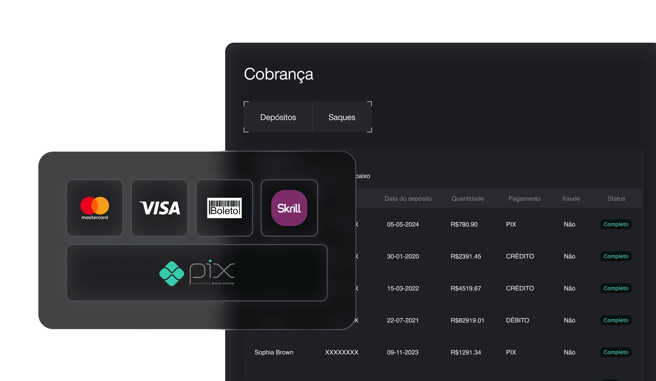 Tudo o que sua operação precisa — do onboarding ao saque — já integrado ao seu backoffice.