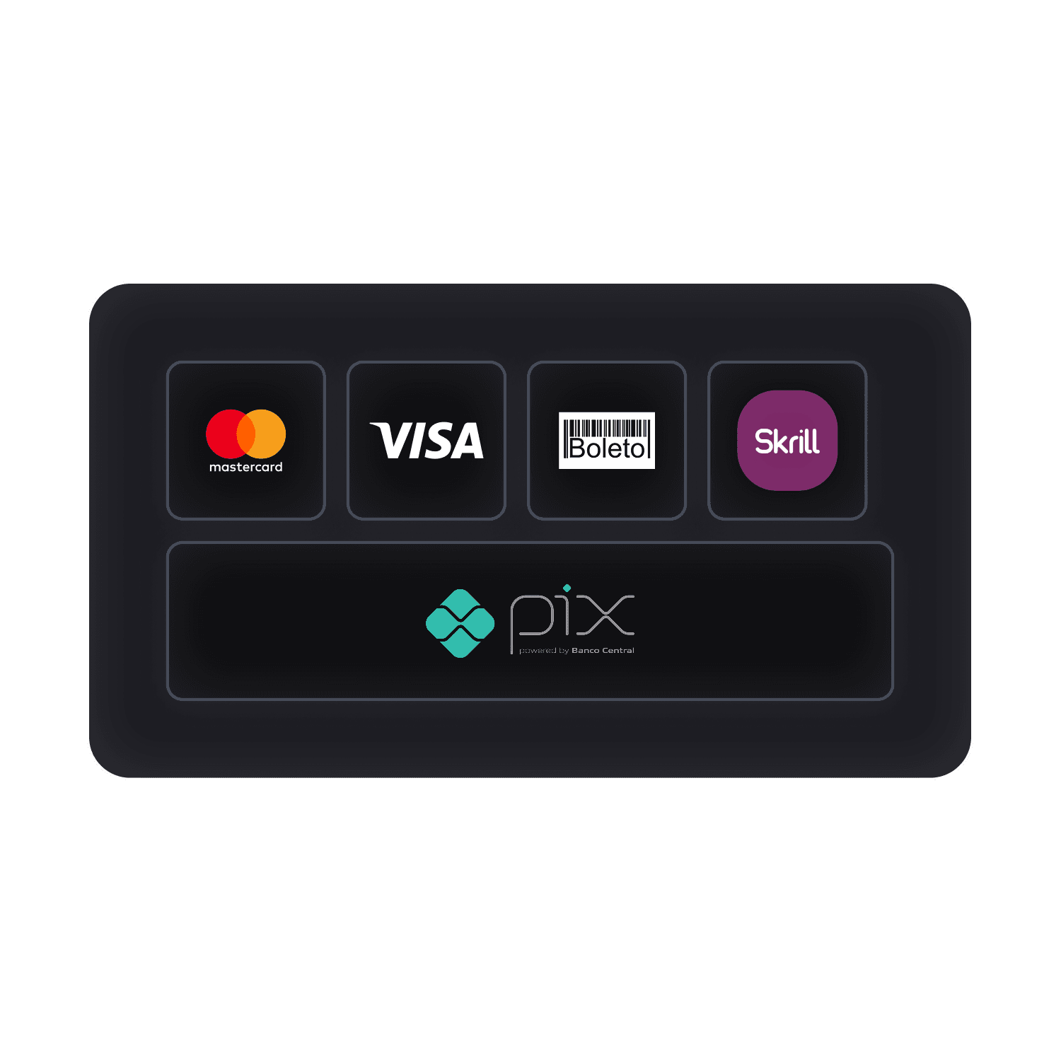 Ofereça total liberdade com pagamentos via cartão, cripto e Pix.